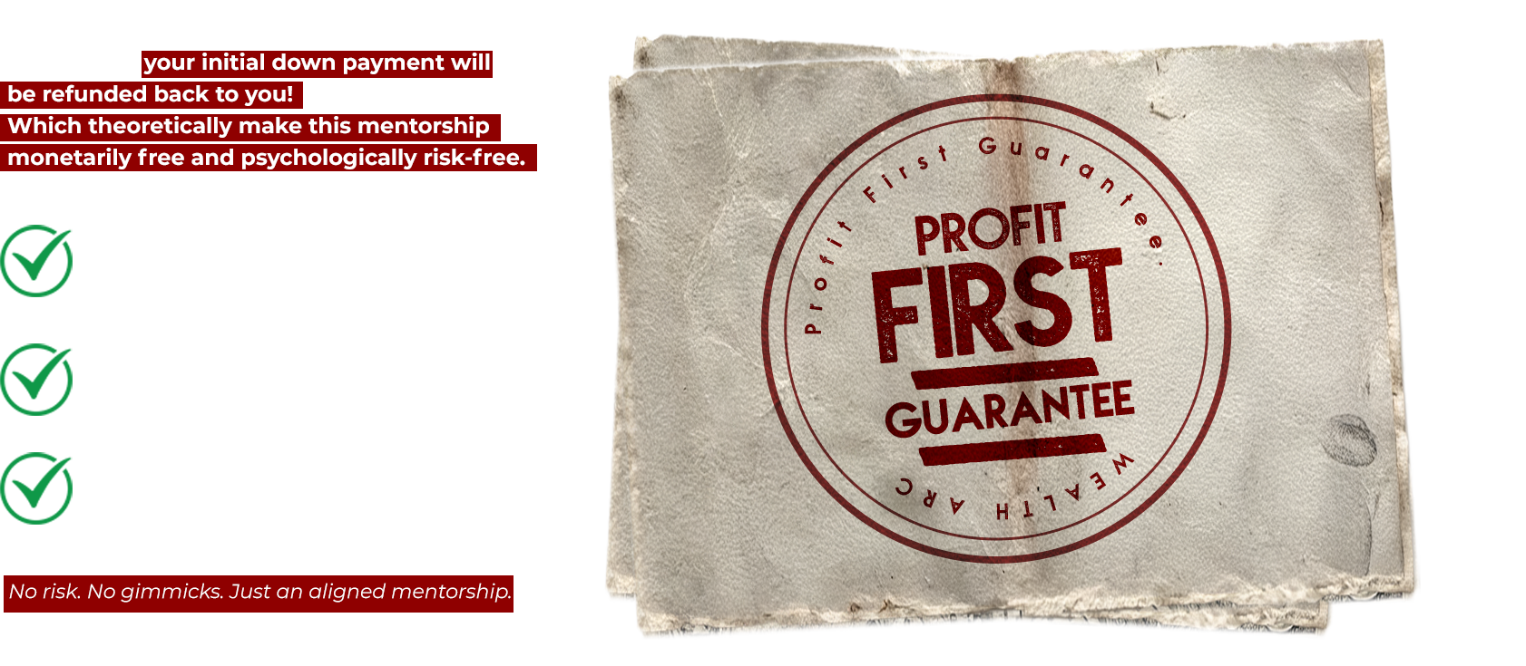 Make more money than what’s owed in net profit within 12 months while following the plan (calls, journaling, risk rules), and we refund your down payment!