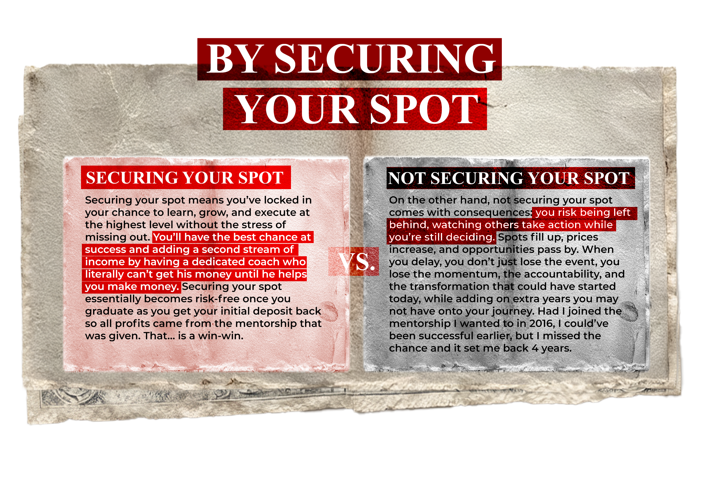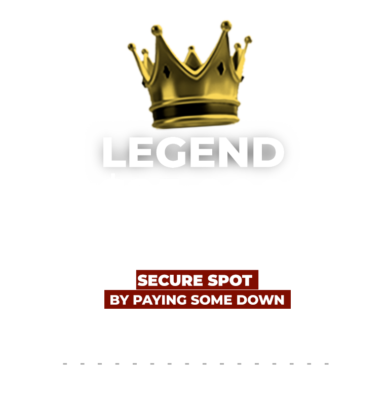The first ever win-win mentorship that takes it up a notch. Tuition cannot be paid in full unless we help you profit. If I don't help you, you do NOT pay anything else other than your down payment. With Legend, you get more coaching calls, more masterminds, a custom